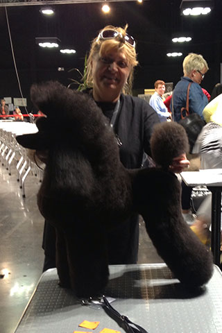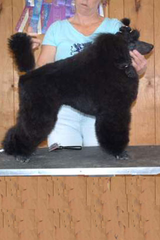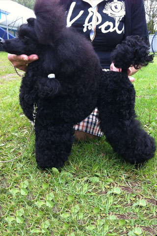 Deze poedel heeft een schofthoogte vanaf 35 cm. Wij fokken al 6 generaties zwart op zwart met een schofthoogte van ca. 38 cm.