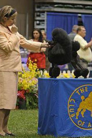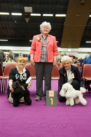 Dit is de kleinste poedel in het poedelras en heeft een schofthoogte die kleiner is dan 28 cm. Hier ziet u Julia. Zij komt voort uit Sire. Tinkylee Winnetou & Dam. Aedan Reason to Dream. Zij is een typische show poedel van slechts 26 cm schofthoogte.