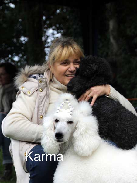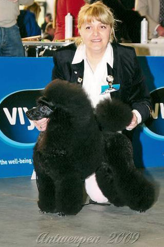 We hebben een kleine kennel in het oosten van Nederland. Ik ben geboren in Transylvanië en ben in 1985 in Nederland gekomen. Hier heb ik mijn echtgenoot ontmoet. In 1997, toen mijn dochter 6 jaar was, wilden we graag een hond en zochten we een poedel. Mijn echtgenoot is opgegroeid met een Duitse herder, maar ik wilde een kleinere hond. We gingen dus op zoek naar een middenslag poedel. We vonden bij een fokker 3 prachtige zwarte poedels. We kochten een teefje, genaamd Kimm en namen haar met liefde op in onze familie.